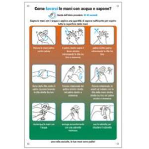 Etichetta 20x30cm "COME LAVARSI LE MANI"