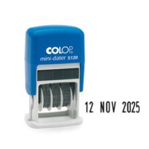 COLOP MINI DATARIO S120. DATARIO AUTOINCHIOSTRANTE A ALTEZZA CARATTERI MM 3,8. FUSTO ANTIURTO IN ABS. TAMPONE RICAMBIO E/10 COLORE NERO.Carrello