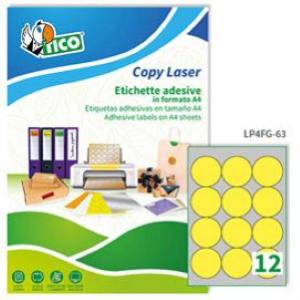Etichetta adesiva LP4F giallo fluo 70fg A4 tonda Ø63,5mm (12et/fg) Tico
