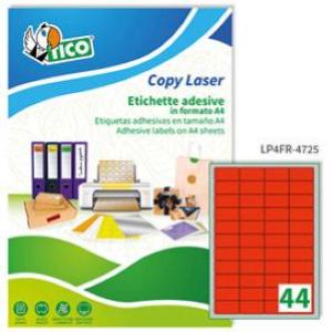 Etichetta adesiva LP4F rosso fluo 70fg A4 47,5x25,5mm (44et/fg) Tico