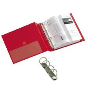 RACCOGLITORE IN COLPANR (CARTONE RIVESTITO IN PVC) CON MECCANISMO A 4 ANELLI TONDI. UTILI IN UFFICIO, A SCUOLA E A CASA. FORMATO ESTERNO: 200X225 MM. FORMATO CONTENUTO: 150X210 MM (A5). DORSO: 30 MM. DIAMETRO ANELLI: 25 MM. COLORE ROSSO.